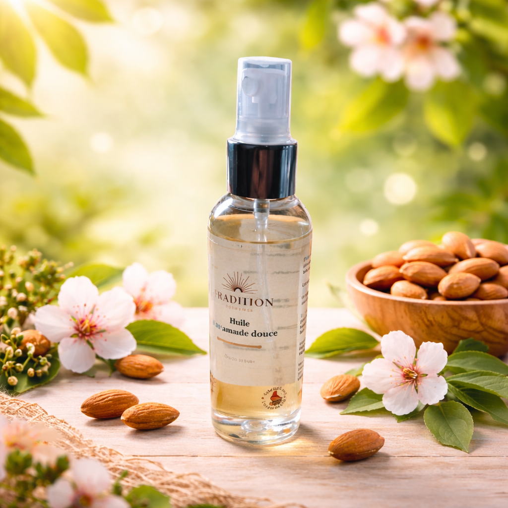 Offrez à votre peau et vos cheveux un soin naturel et délicat avec l’Huile d’Amande Douce Bio enrichie en Vitamine E ! ✨💖
